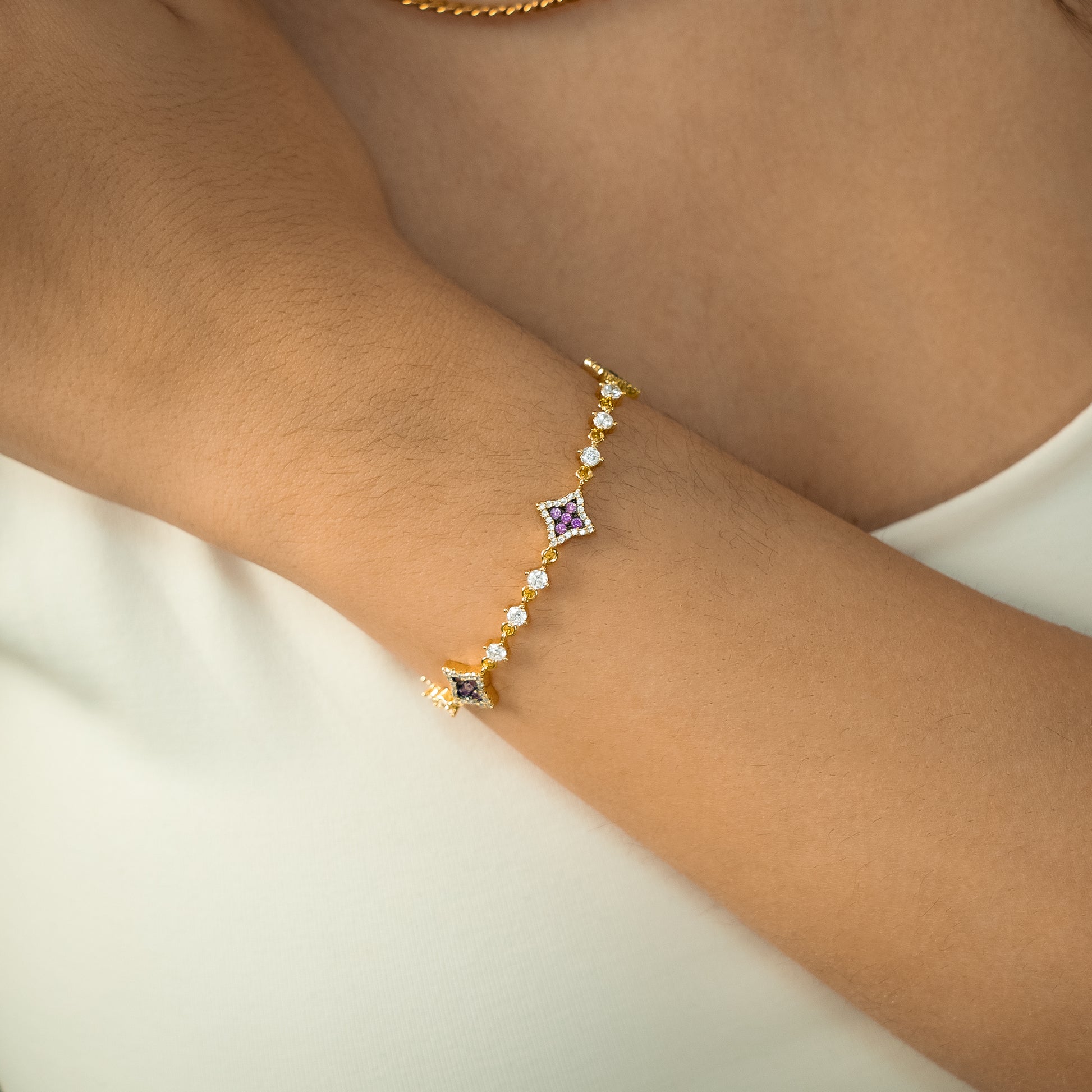 Découvrez notre Bracelet Flower Tennis, une pièce exquise qui marie l'élégance intemporelle du bracelet tennis et la délicatesse des fleurs. Chacune des fleurs, ornées de pierres scintillantes violettes et d'une épaisseur de 8 mm, ajoute une touche de charme et de sophistication à ce bracelet de 3 mm.