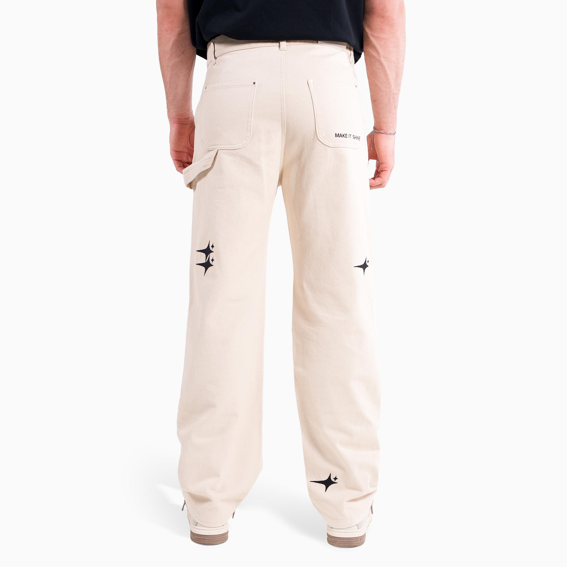 Découvrez notre Carpenter Denim Make it Shine, un pantalon en denim à coupe ample, conçu pour allier confort et style. Fabriqué en 100% coton, il arbore des logos brodés en noir à l'avant et à l'arrière, ainsi qu'une broderie "Make it Shine" sur la poche arrière pour une touche distinctive. Les finitions en métal personnalisées et le bouton de fermeture gravé du logo ajoutent une note de luxe discret à cette pièce incontournable.