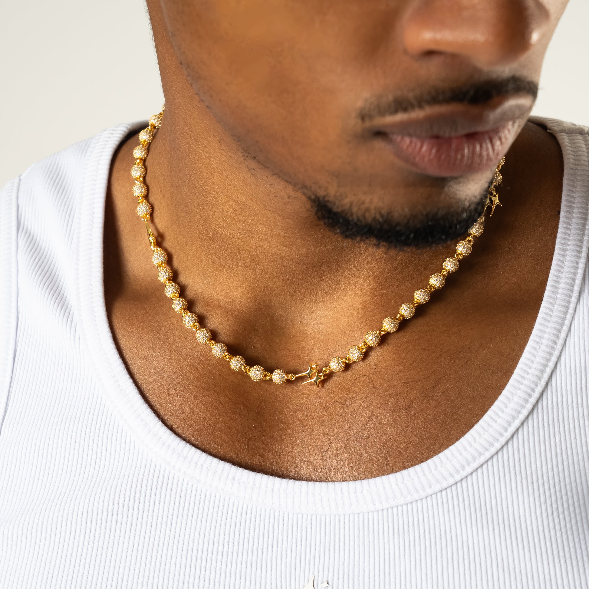 Découvrez notre chaîne Iced Bead Signature, une création éclatante qui allie modernité et sophistication. Elle alterne entre beads serties de zircons étincelants et pièces emblématiques du double logo Make it Shine, subtilement intégrées pour une identité affirmée. Une pièce audacieuse qui capte la lumière sous tous les angles et incarne l’ADN distinctif de la Maison.