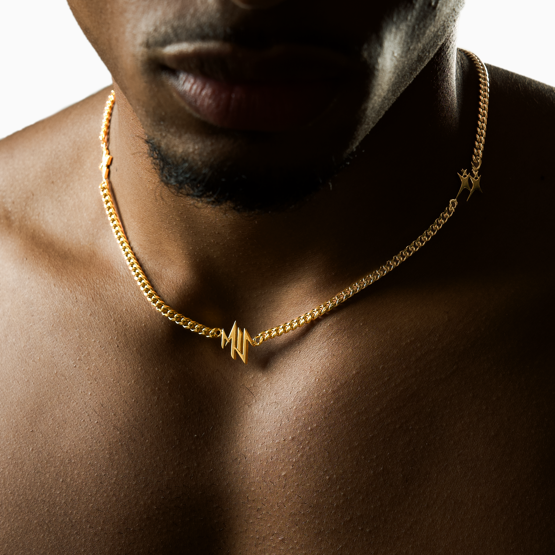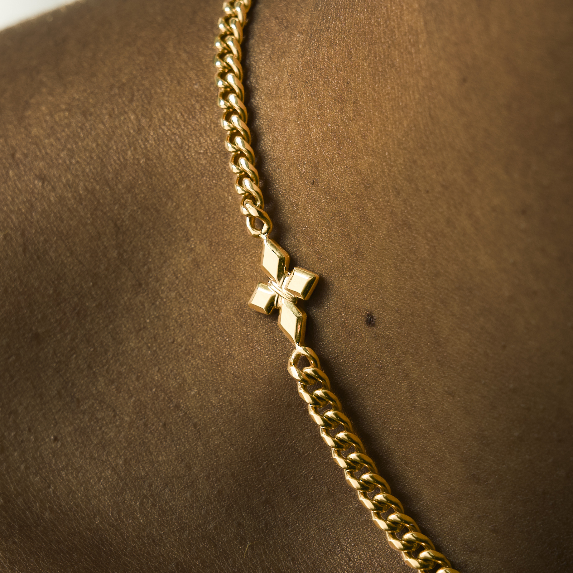 La chaîne MIS Cuban réunit les trois symboles emblématiques de Make It Shine : la croix étoilée, le logo double étoile et le sigle MIS.