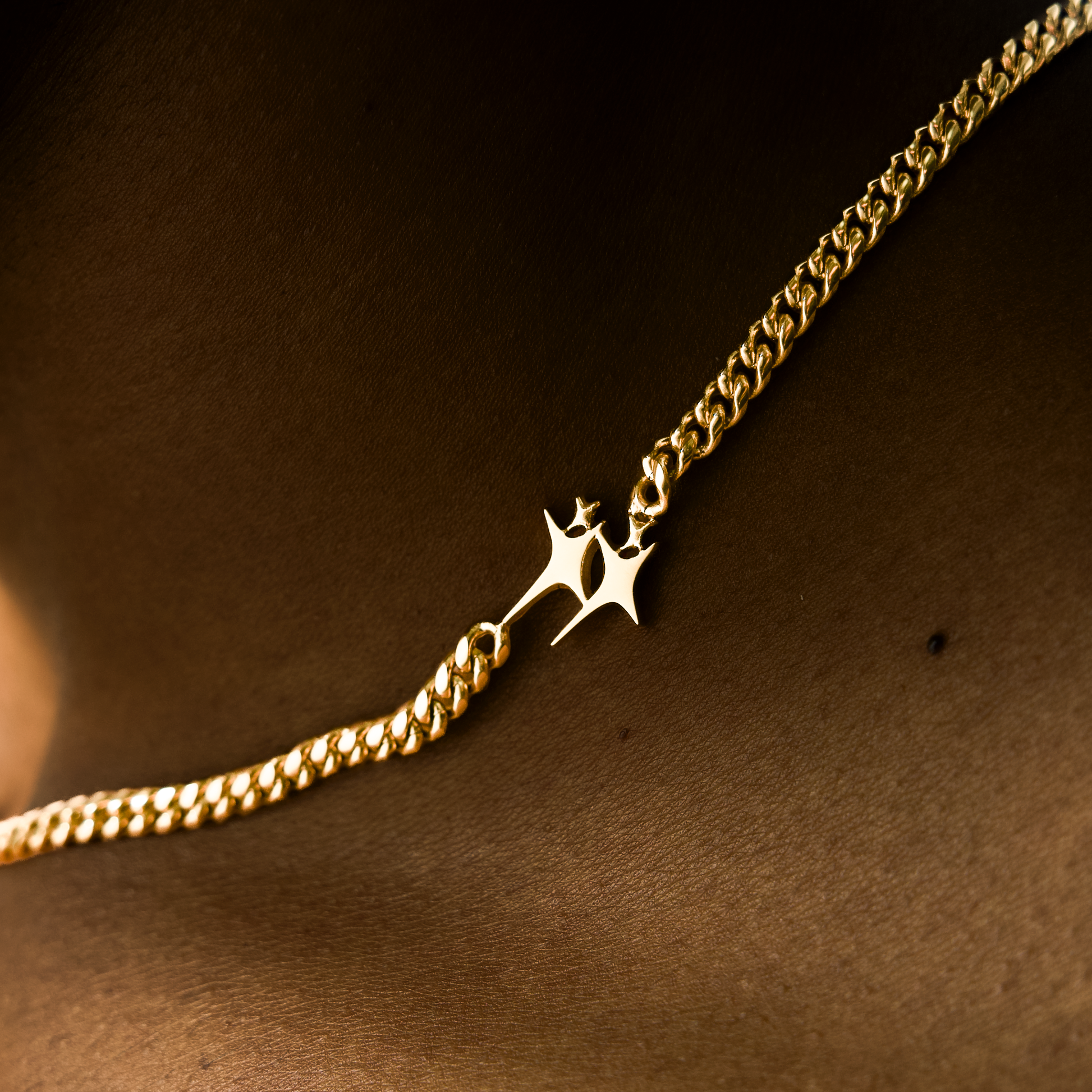 Reliés par une chaîne Cuban link de 4 mm, ils incarnent la force, la lumière et l’identité de la marque.