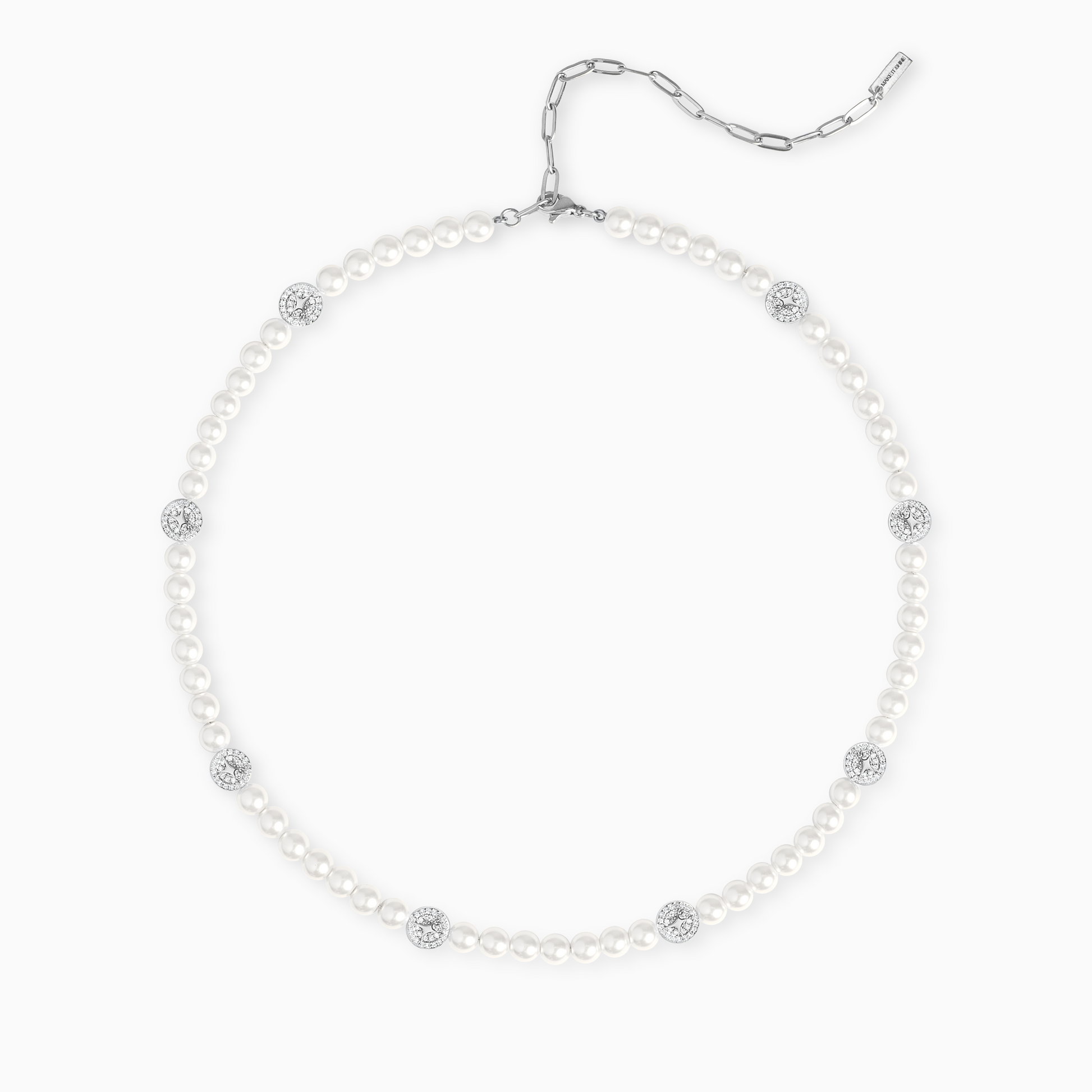 Métal finition argentée, perles en résine blanche et oxyde de zirconium