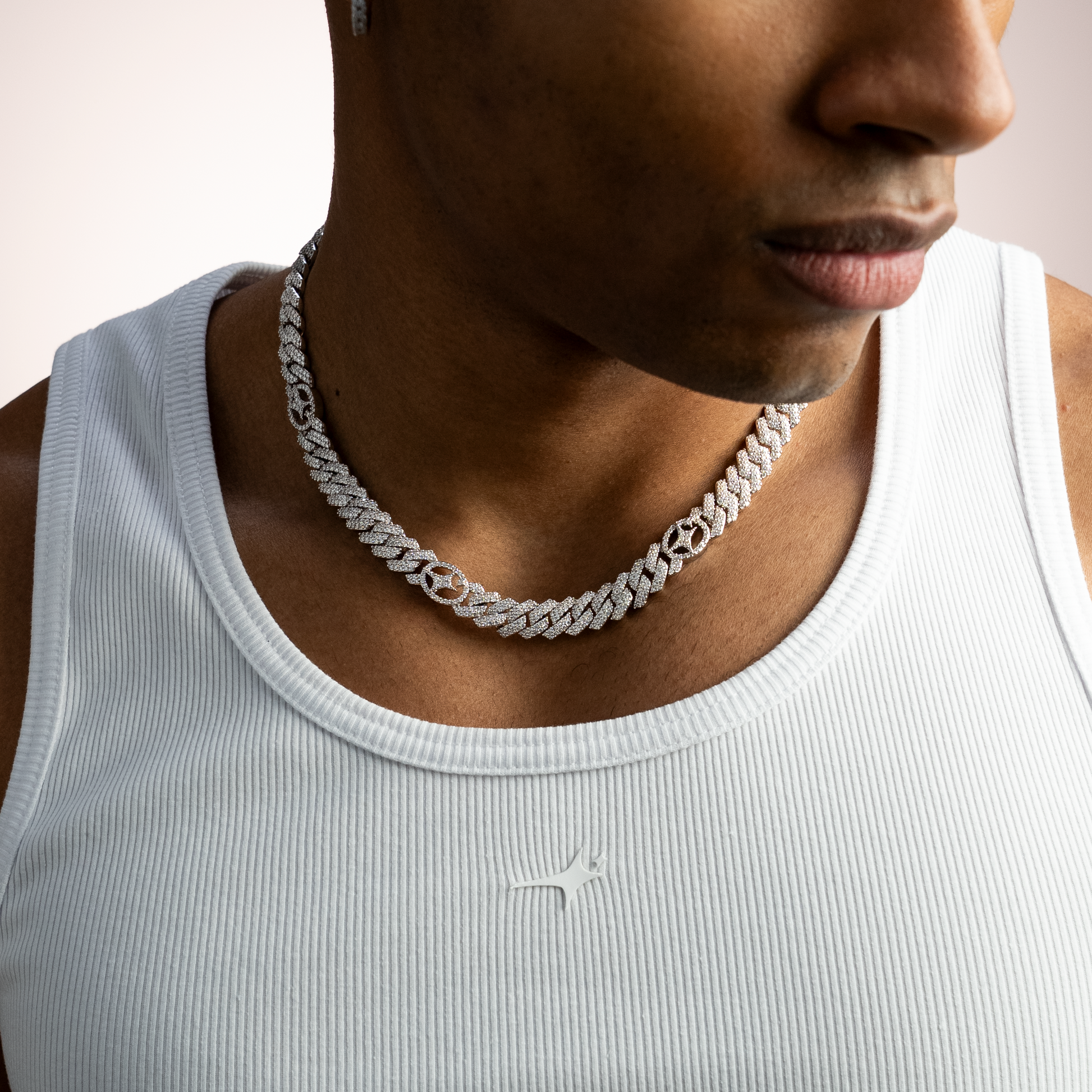 Découvrez notre chaîne Prong Link 10 mm, une pièce imposante et sophistiquée qui incarne pleinement l’ADN de Make it Shine. Son design unique allie des maillons prong link entièrement sertis d’oxydes de zirconium scintillants à des logos Make it Shine subtilement intégrés entre eux. Un éclat incomparable et une signature forte pour un bijou qui ne passe pas inaperçu.