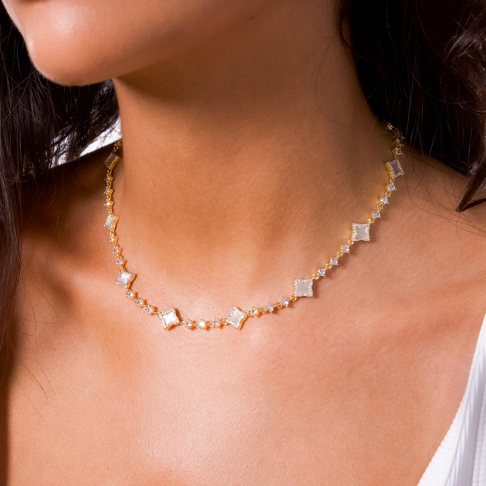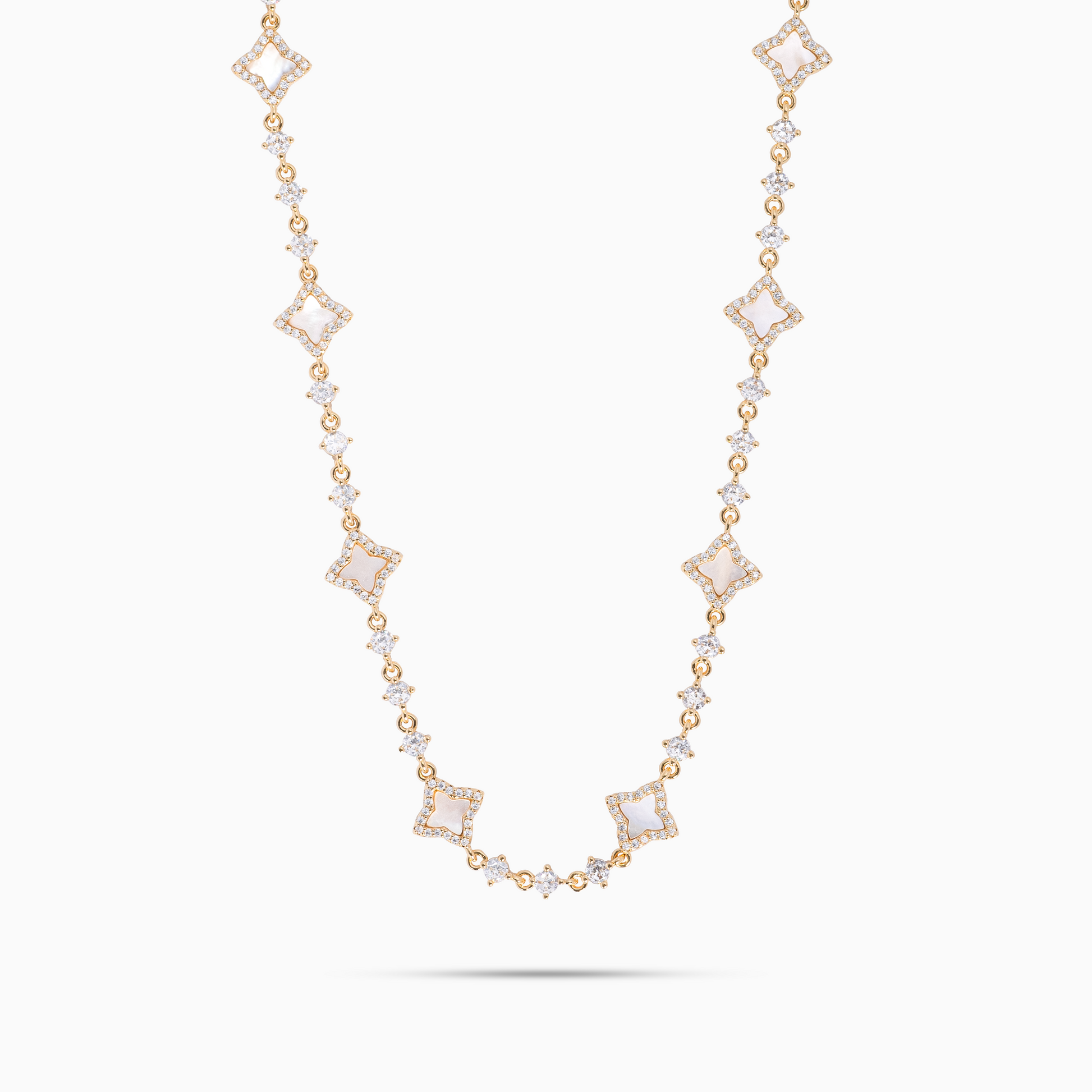Découvrez notre Chaîne Flower Tennis, une pièce exquise qui marie l'élégance intemporelle de la chaîne tennis et la délicatesse des fleurs. Chacune des fleurs, ornée d'une pierre imitation nacre et d'une épaisseur de 8 mm, ajoute une touche de charme et de sophistication à cette chaîne de 3 mm.