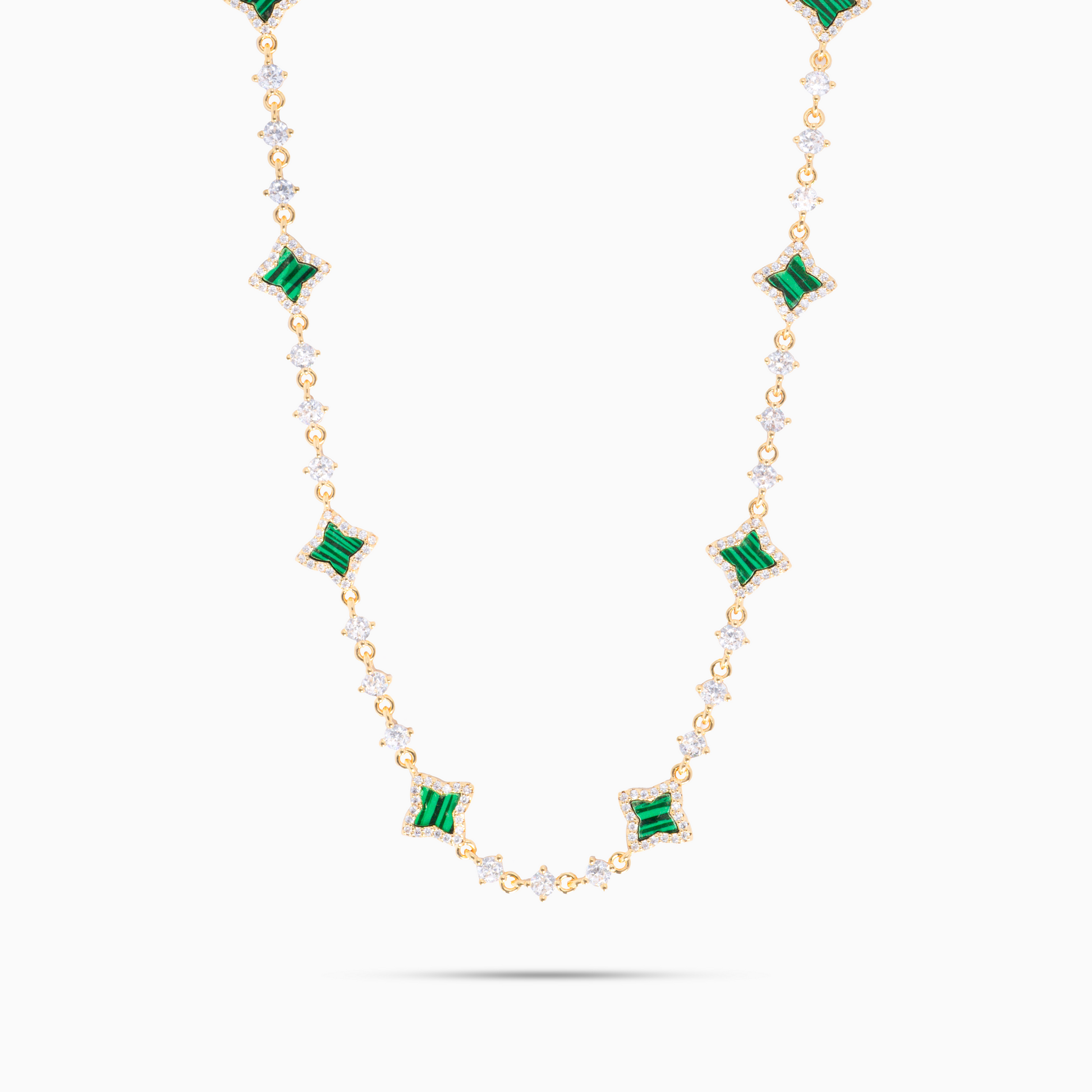 Découvrez notre Chaîne Flower Tennis, une pièce exquise qui marie l'élégance intemporelle de la chaîne tennis et la délicatesse des fleurs. Chacune des fleurs, ornée d'une pierre imitation malachite et d'une épaisseur de 8 mm, ajoute une touche de charme et de sophistication à cette chaîne de 3 mm.