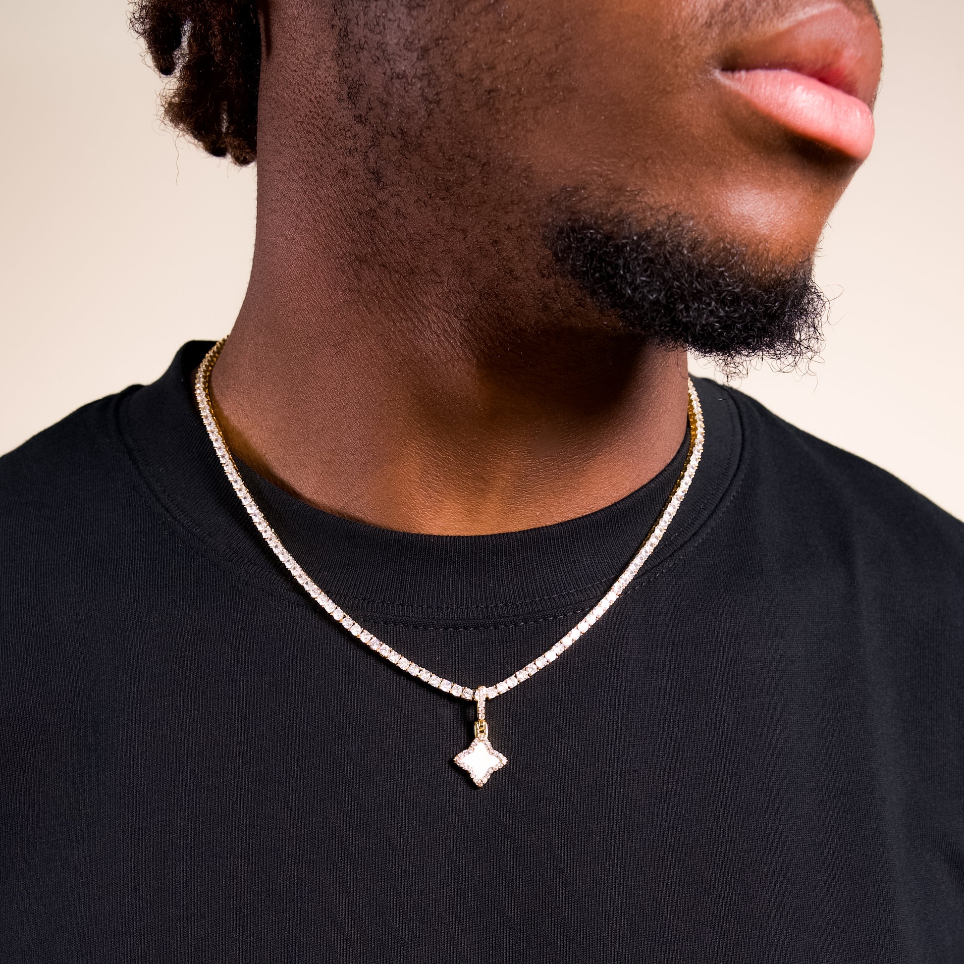 Voici notre pendentif Flower, alliant délicatesse et raffinement intemporel. Au cœur de ce bijou, une fleur sertie de pierres scintillantes met en valeur une pierre centrale en imitation nacre, le tout offrant une épaisseur de 8 mm pour un charme subtil et lumineux.