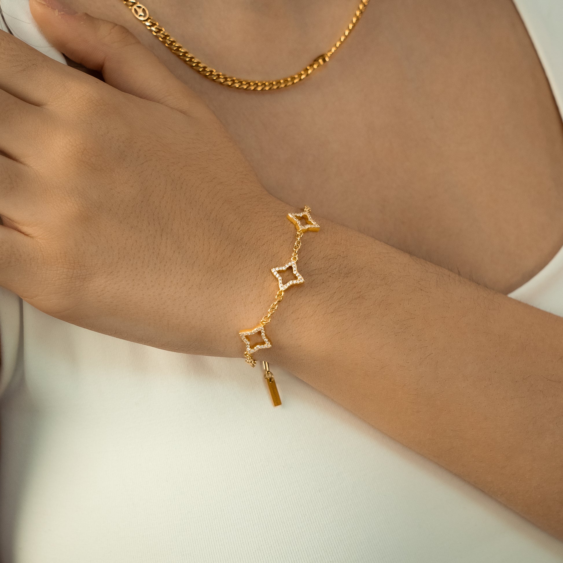 Découvrez notre Bracelet Hollow Shiny Flower, une pièce qui capture l'essence de la sophistication. Chacune des fleurs de cette chaîne câble de 3 mm est magnifiquement agrémentée de pierres scintillantes, offrant un éclat subtil et raffiné.