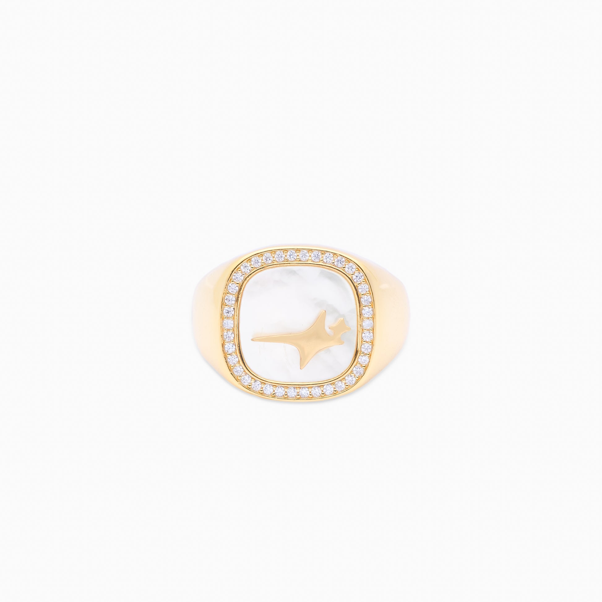 Découvrez notre Raw Ring, une chevalière au design affirmé et épuré, mise en valeur par un large plateau carré de 15 mm. Son centre, orné d’une pierre imitation nacre, contraste avec finesse avec le logo Make it Shine gravé en relief. Le tout est délicatement encerclé d’oxydes de zirconium blancs, apportant une touche d’éclat discrète mais sophistiquée.