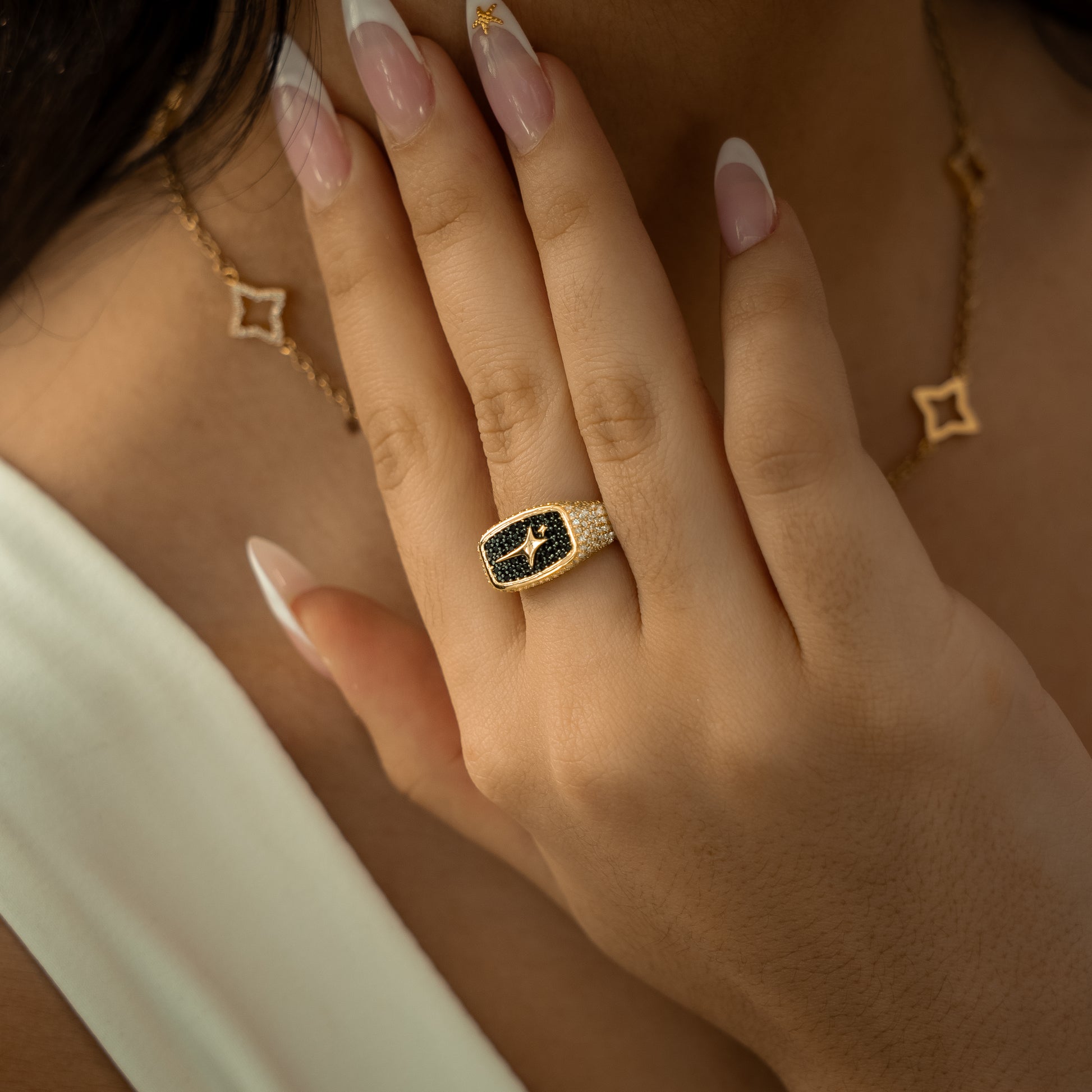 Découvrez notre Iced Rectangle signet ring au plateau rectangulaire de 9 mm d'épaisseur. Arborant notre emblématique logo, accompagnée d'oxydes de zirconium noirs et blancs, cette bague allie sophistication et éclat pour un style audacieux.