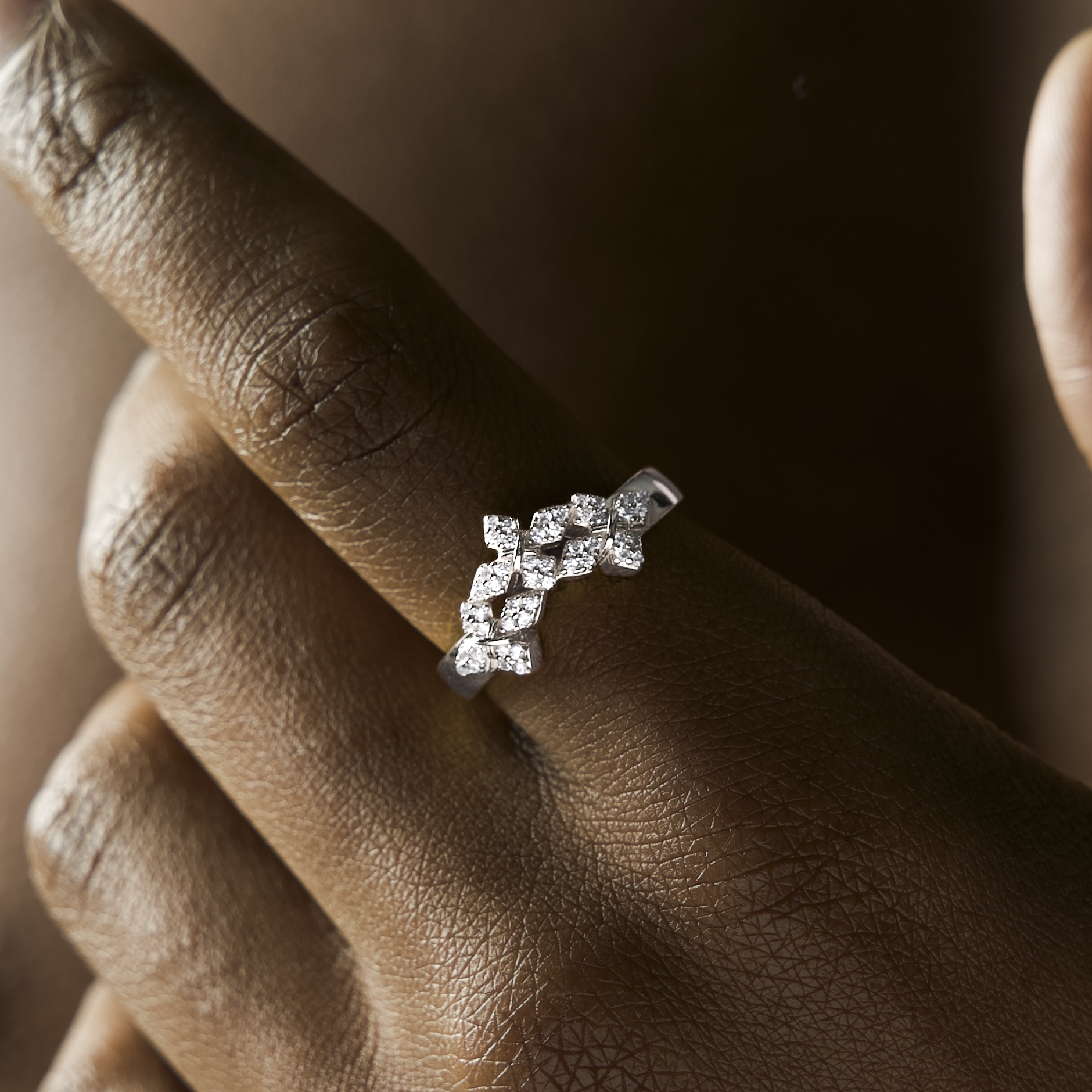 Avec son anneau de 4 mm, cette pièce impose un design fort, qui incarne la grandeur — un rappel que la lumière se révèle toujours après l’épreuve.