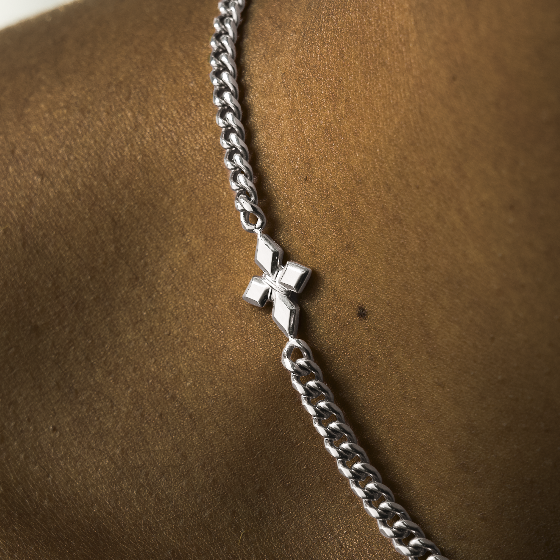 La chaîne MIS Cuban réunit les trois symboles emblématiques de Make It Shine : la croix étoilée, le logo double étoile et le sigle MIS.