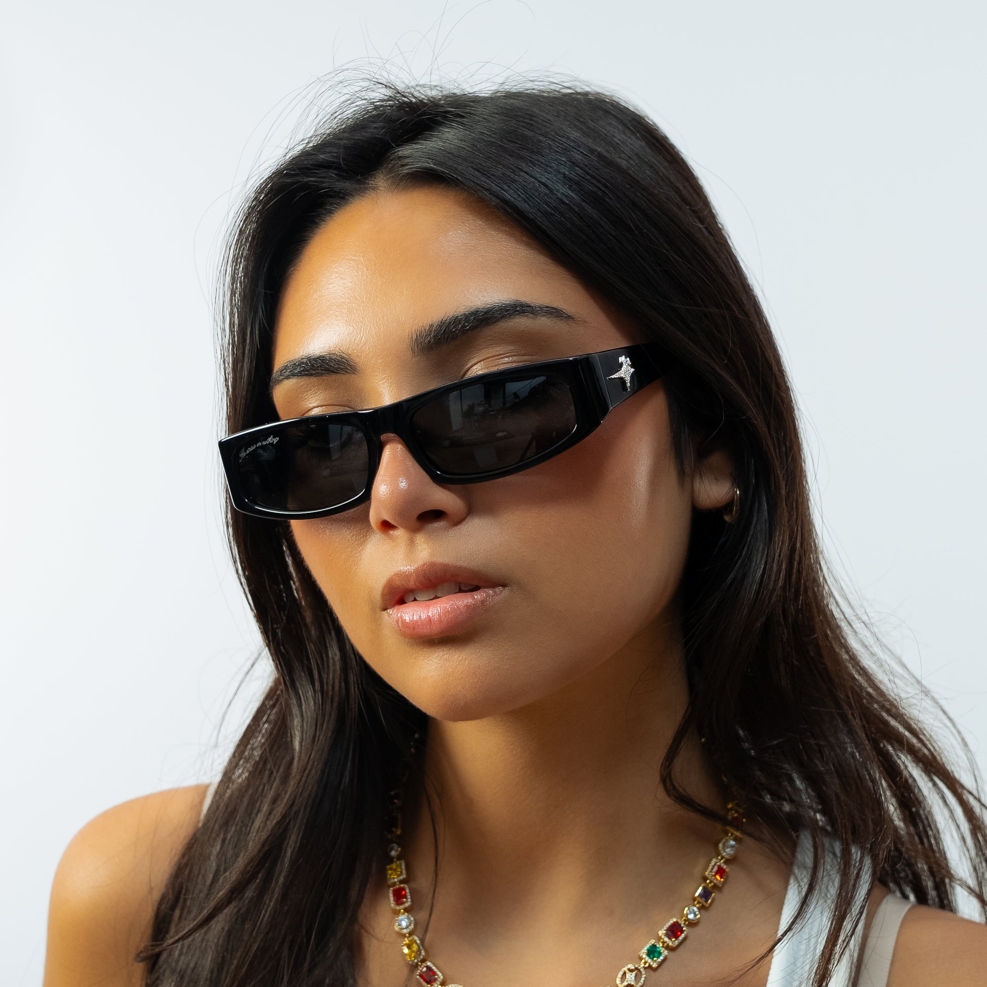 Ces lunettes de soleil Signature rendent hommage au logo emblématique de la Maison. Les branches larges sont ornées de logos Make it Shine argentés en métal. Modernes et élégantes grâce à leur forme rectangulaire, elles ajoutent une touche contemporaine à tous les styles.