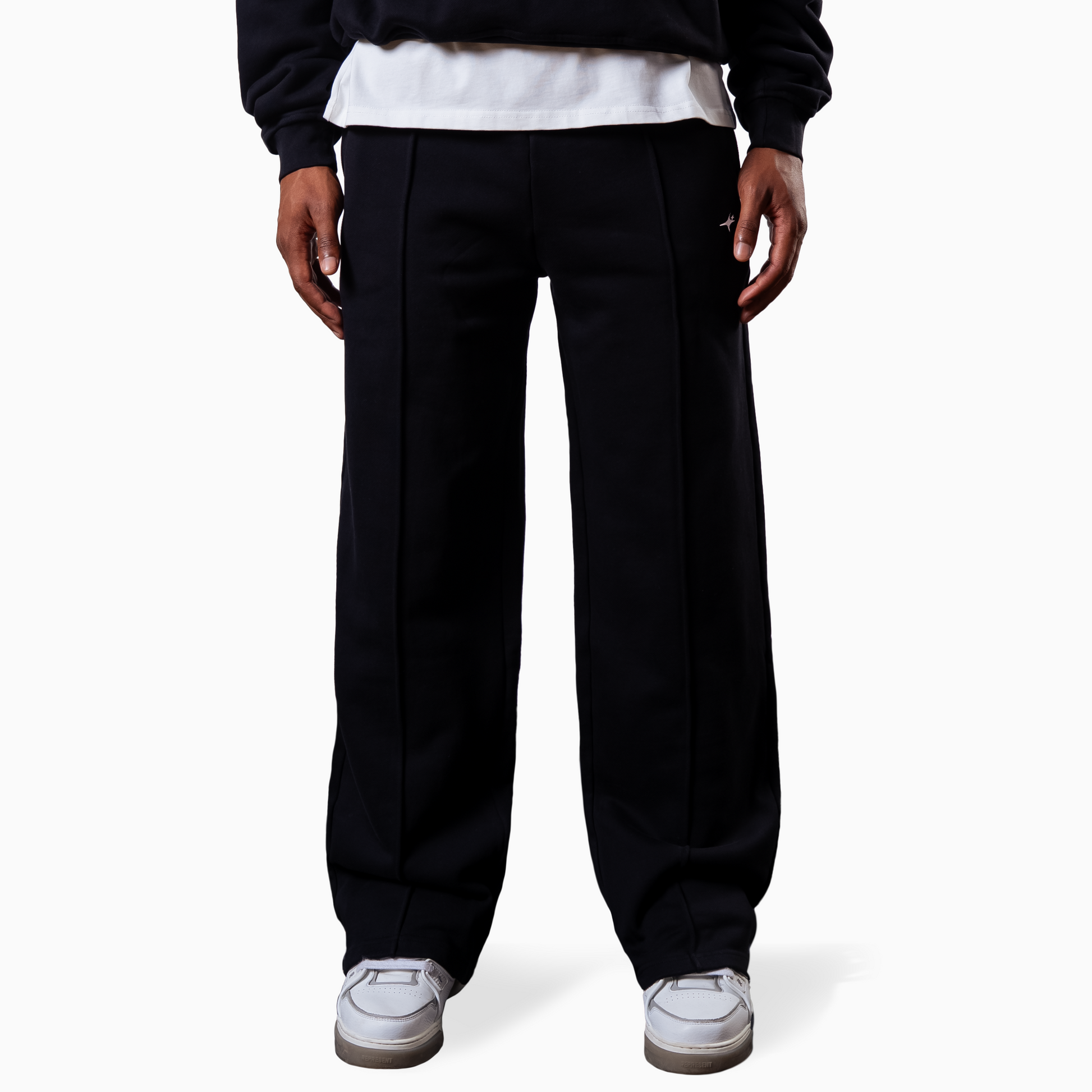 Sweatpant noir en jersey épais avec une coupe ample et confortable, confectionné en 100% coton de qualité supérieure. Doté de poches latérales pratiques et d’une taille élastique avec cordons de serrage internes pour un ajustement optimal.