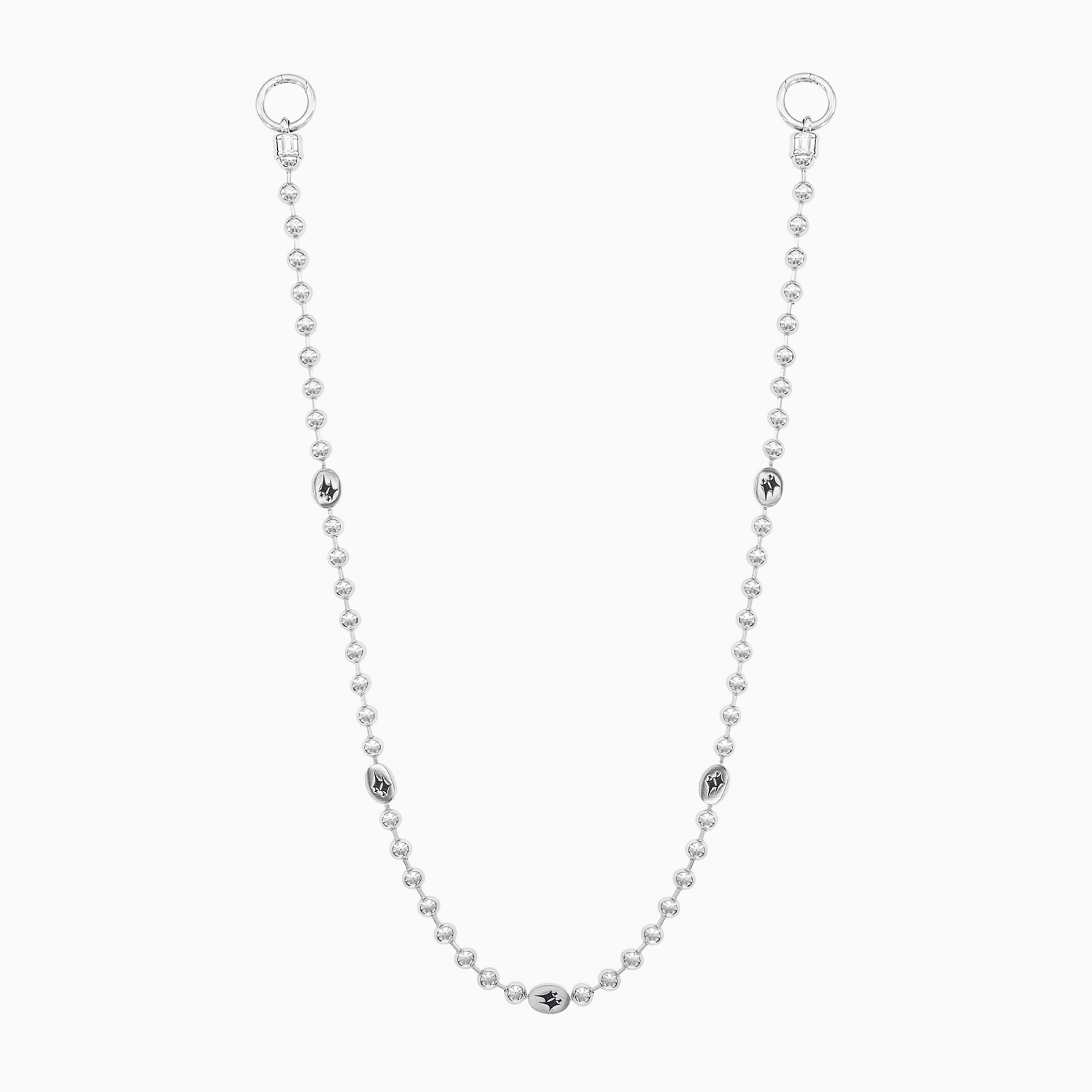Découvrez notre Wallet Chain Bead Link Signature, une version épurée de notre modèle Iced Bead link Signature. Cette chaîne en finition argentée se compose de maillons ronds lisses, ponctués d’ovales répartis avec soin, chacun accueillant notre logo étoile peint avec précision.
