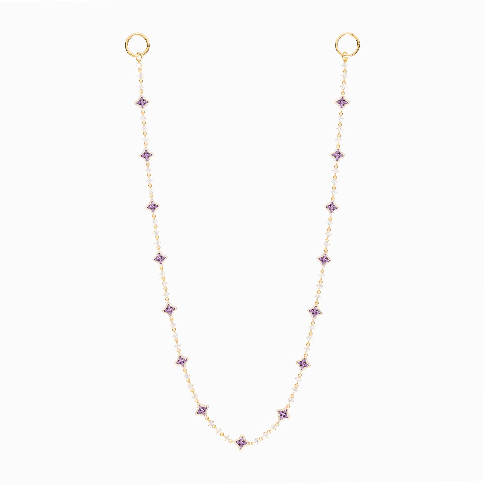 Découvrez notre Wallet Chain Flower Tennis, une pièce qui marie l'élégance intemporelle de la chaîne tennis et la délicatesse des fleurs. Chacune des fleurs, ornées de pierres scintillantes violettes et d'une épaisseur de 8 mm, ajoute une touche de charme et de sophistication à cette chaîne de 3 mm.