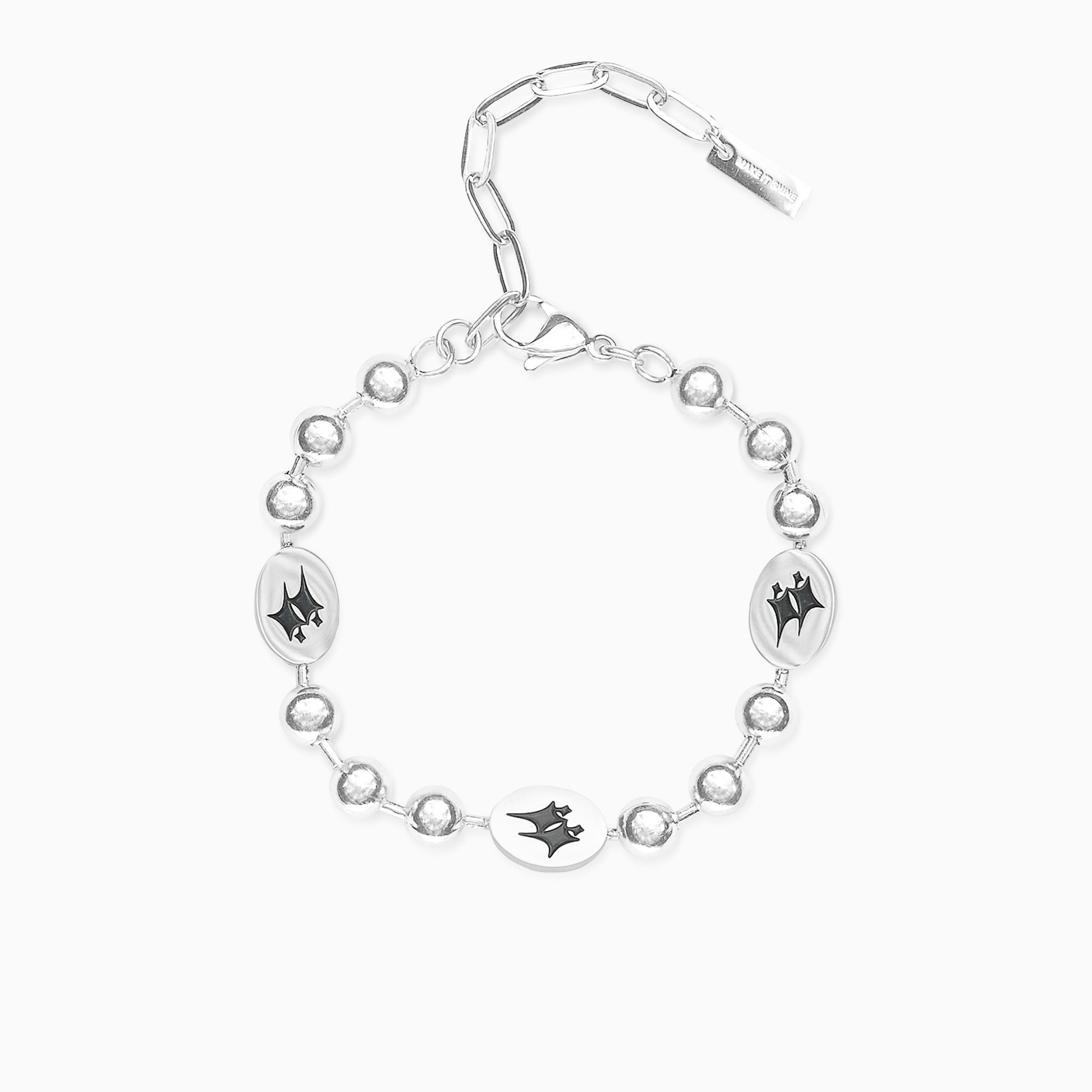 Discover our Bead Link Signature bracelet, a bold piece that revisits classic elegance with a contemporary twist. Crafted in silver-tone stainless steel, it alternates between 6mm beads and discs decorated with the double Make it Shine logo in black enamel paint, the House's iconic signature.