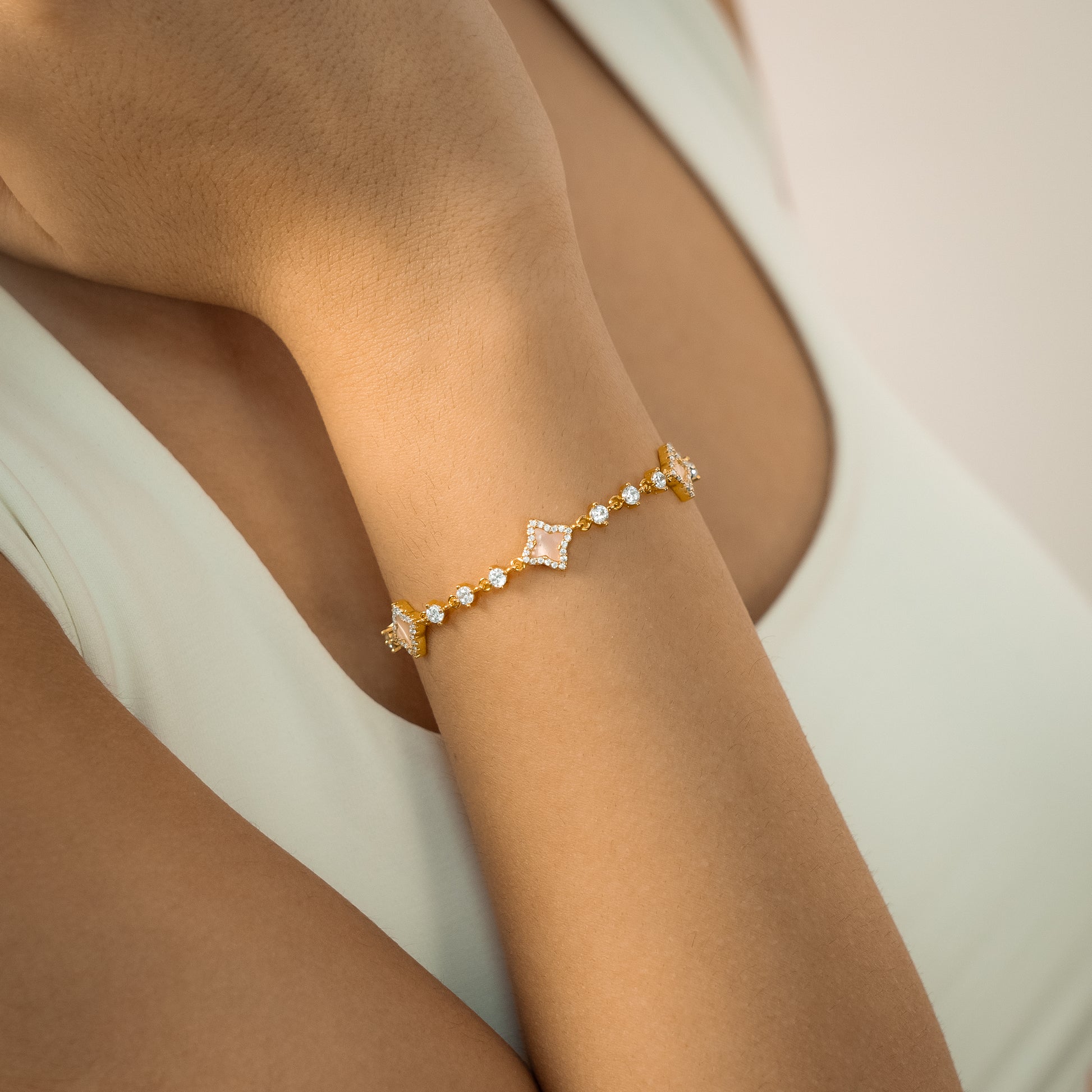 • Gold-finish metal jewelry & CZ stones (yellow, white, or rose): Each layer is precisely applied for a high-quality finish and lasting brilliance. To preserve the shine, avoid contact with water, sweat, and chemicals. Remove before showering, swimming, or exercising.