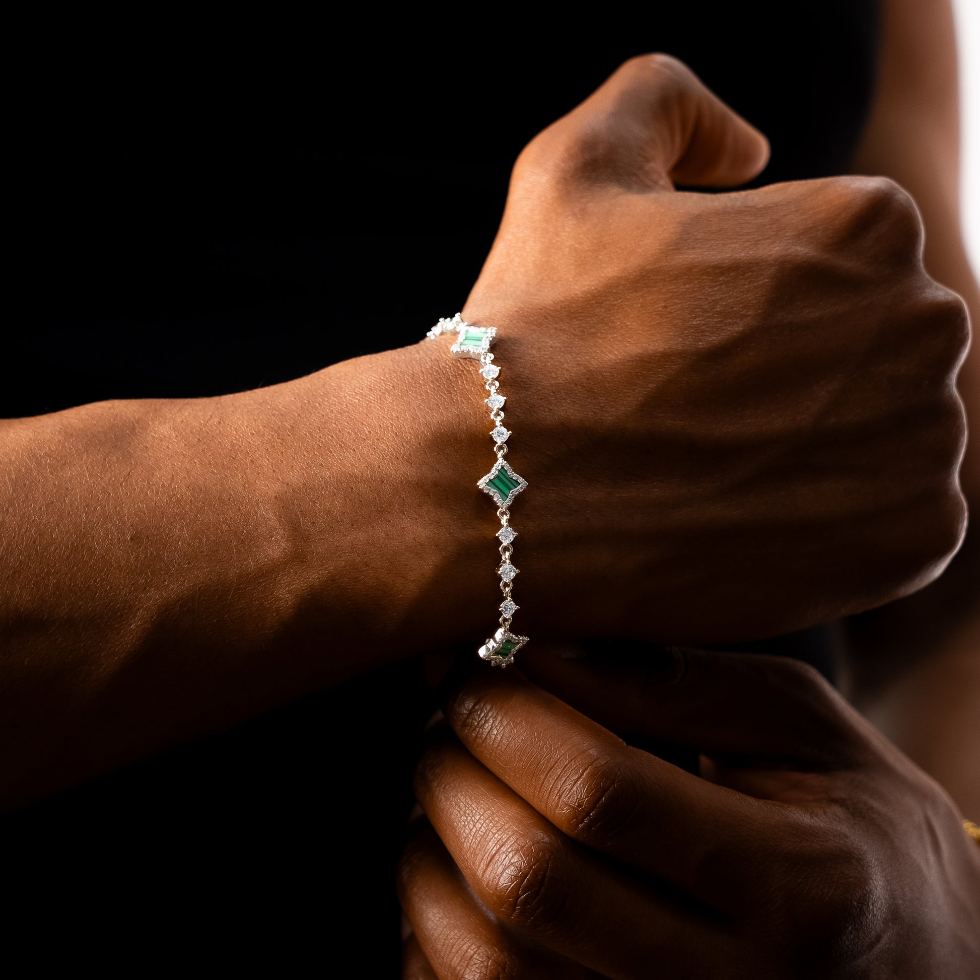Discover our Flower Tennis Bracelet, an exquisite piece that combines the timeless elegance of the tennis bracelet and the delicacy of flowers. Each of the flowers, decorated with an imitation malachite stone and measuring 8 mm thick, adds a touch of charm and sophistication to this 3 mm bracelet.
