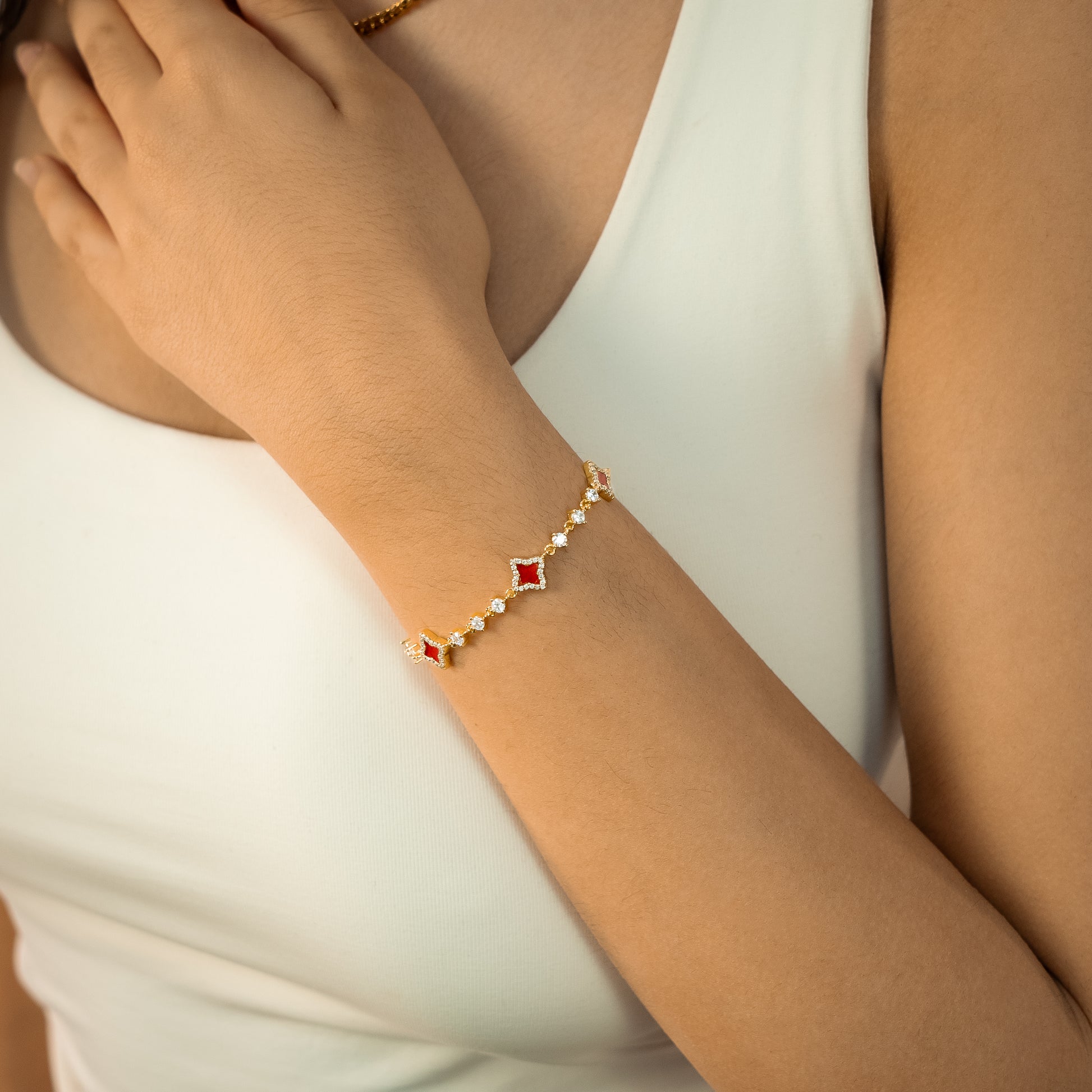 Discover our Flower Tennis Bracelet, an exquisite piece that combines the timeless elegance of the tennis bracelet and the delicacy of flowers. Each of the flowers, adorned with an imitation carnelian stone and measuring 8 mm thick, adds a touch of charm and sophistication to this 3 mm bracelet.
