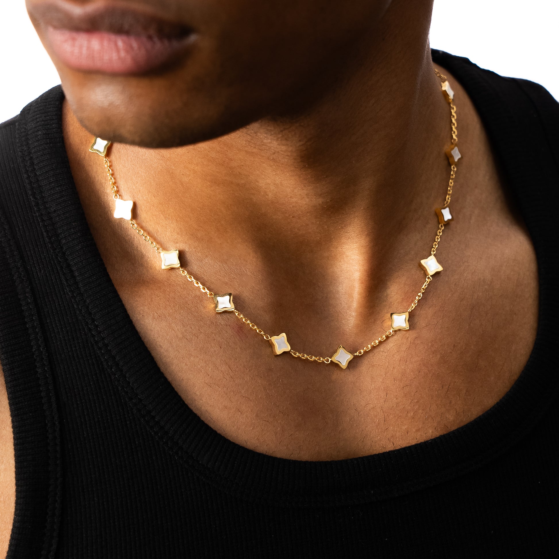 Discover our Flower Chain, an exquisite piece that combines the timeless elegance of a cable chain with the delicacy of flowers. Each flower, adorned with a Mother-of-pearl imitation stone and measuring 8mm in thickness, adds a touch of charm and sophistication to this 2mm chain.