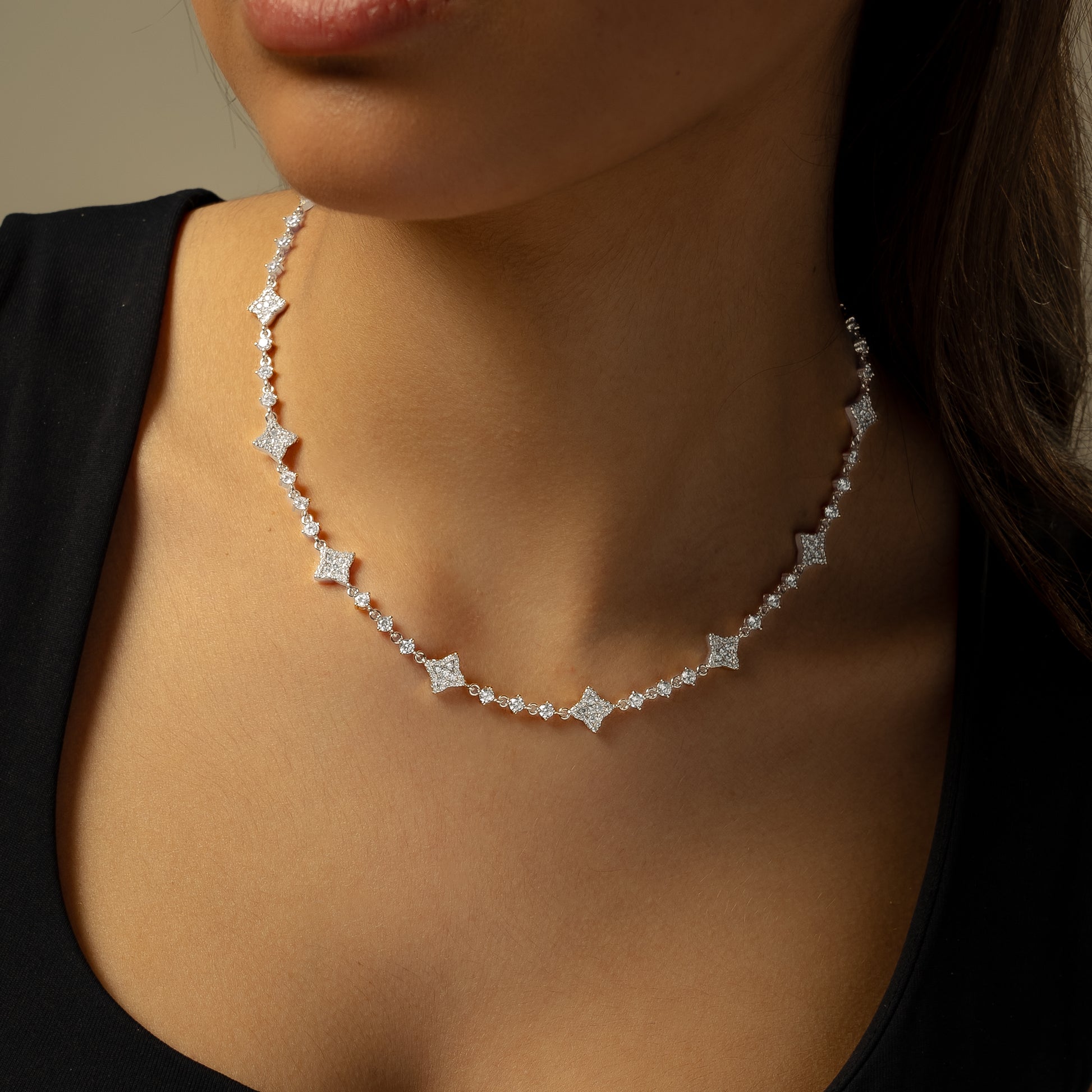 Discover our Flower Tennis Chain, an exquisite piece that combines the timeless elegance of a tennis chain with the delicacy of flowers. Each flower, adorned with sparkling stones and measuring 8 mm thick, adds a touch of charm and sophistication to this 3 mm chain.