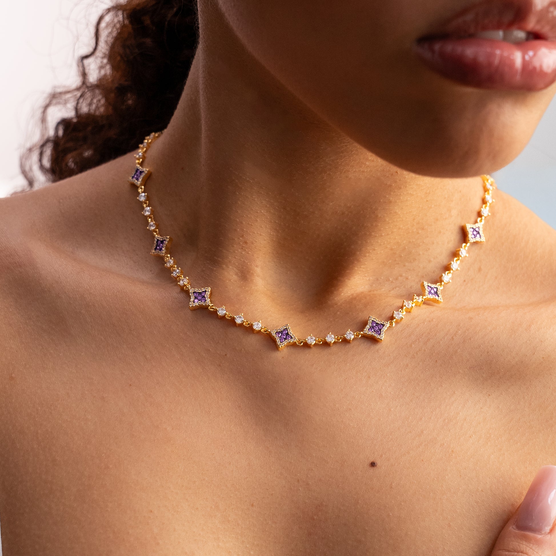 Discover our Flower Tennis Chain, an exquisite piece that combines the timeless elegance of the tennis chain with the delicacy of flowers. Each of the flowers, adorned with sparkling purple stones and measuring 8 mm thick, adds a touch of charm and sophistication to this 3 mm chain.