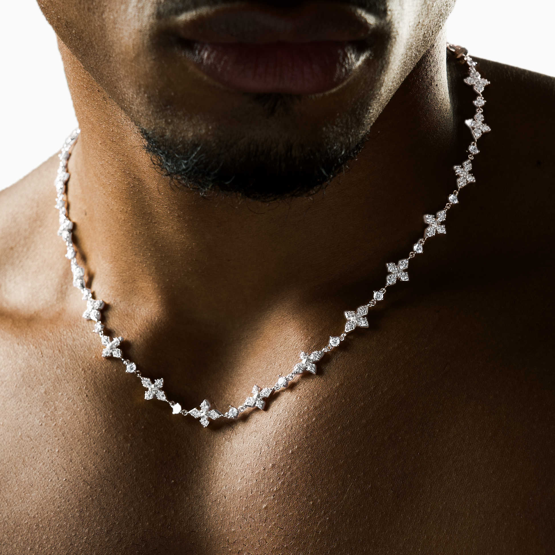 Composed of a succession of sculpted starry crosses set with zirconium oxides, it symbolizes resilience, transcendence and the light born from hardship.