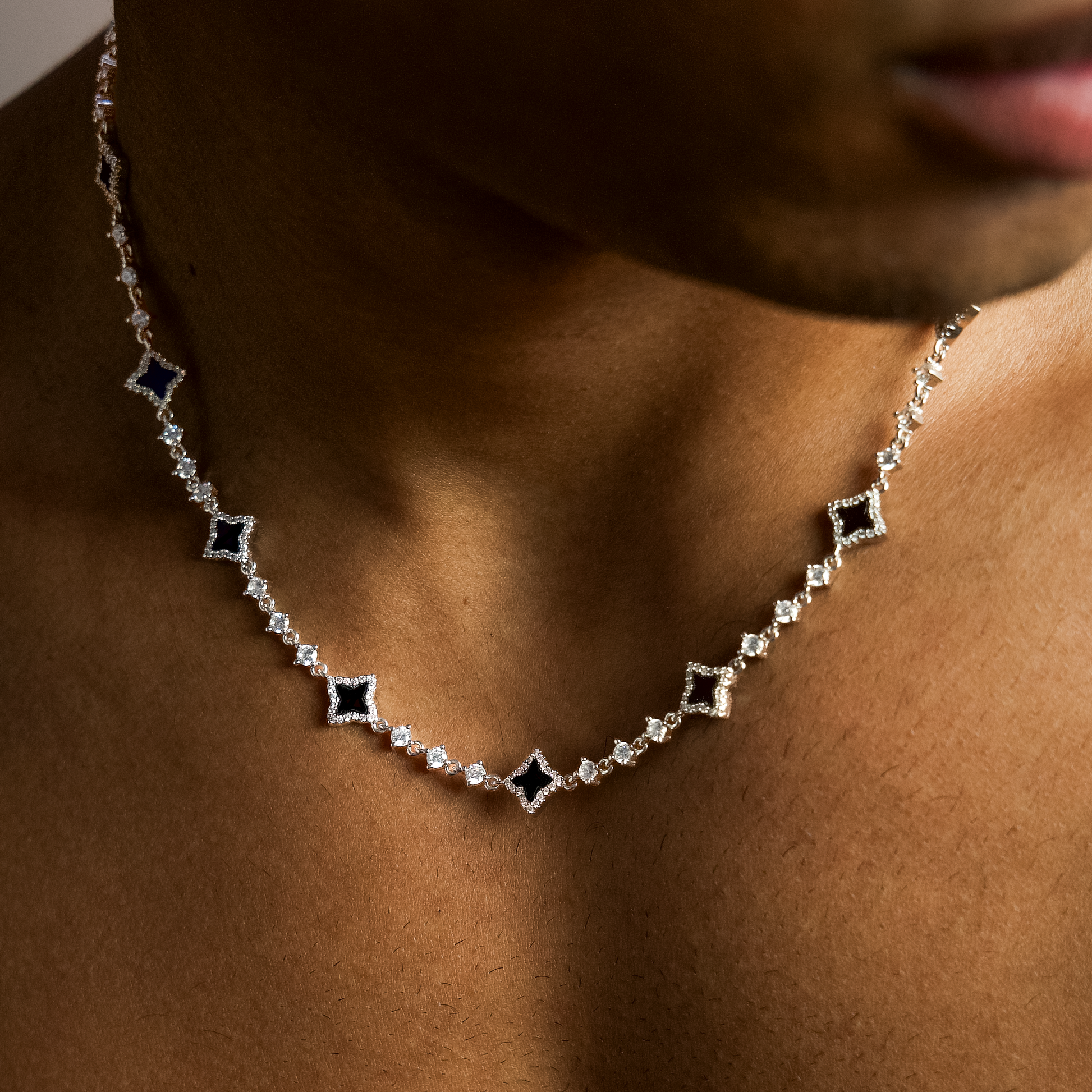 Discover our Flower Tennis Chain, an exquisite piece that combines the timeless elegance of the tennis bracelet with the delicacy of flowers. Each of the flowers, adorned with an imitation onyx stone and measuring 8 mm thick, adds a touch of charm and sophistication to this 3 mm bracelet.
