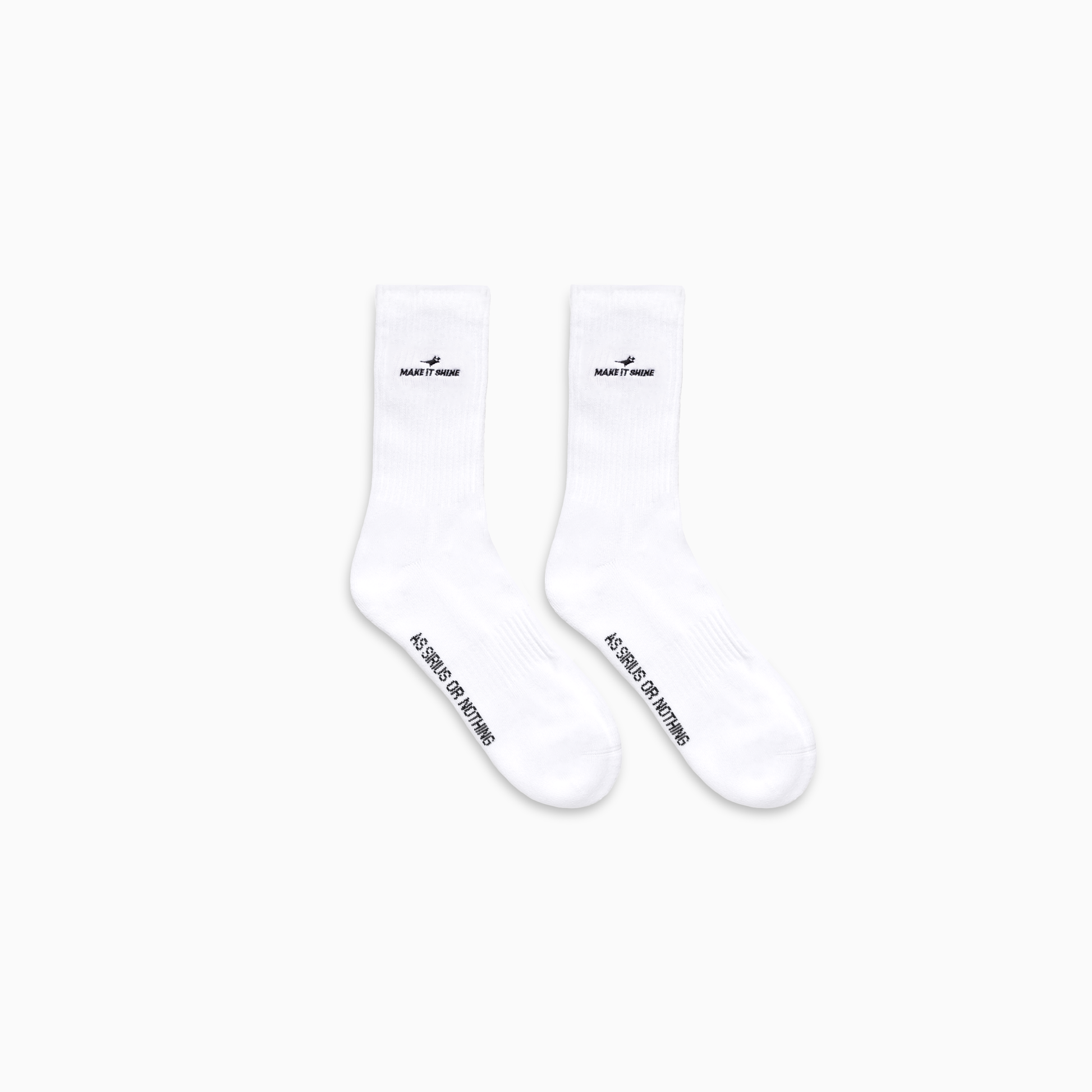 The Signature white socks with black embroidery are made of 100% cotton and feature the Make it Shine logo.
