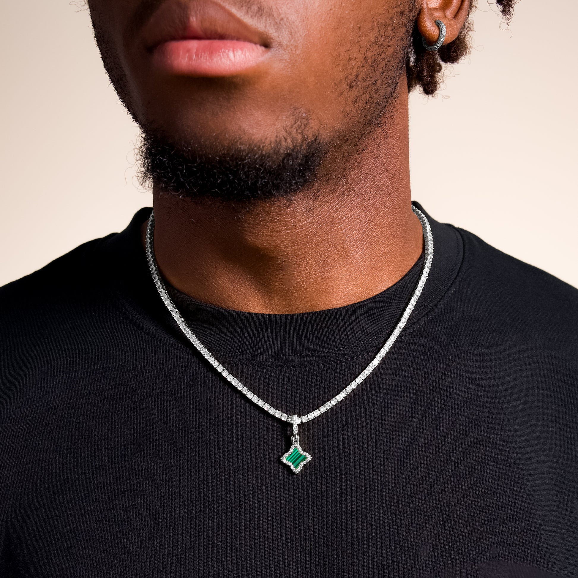 Here is our Flower pendant, combining delicacy and timeless refinement. At the heart of this jewel, a flower encrusted with sparkling stones highlights a central stone in imitation malachyte, offering a thickness of 8 mm for a subtle and luminous charm.