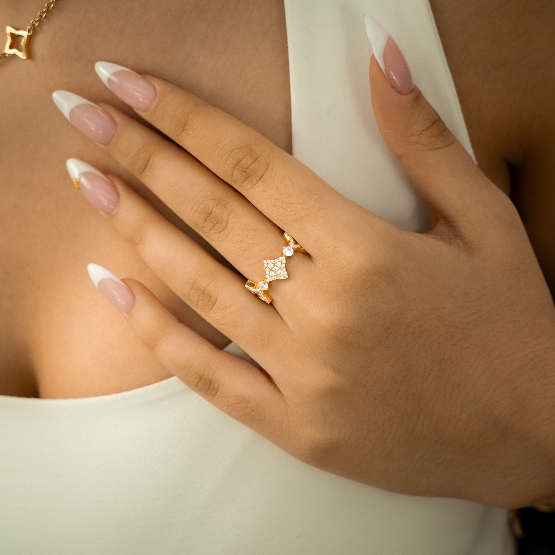 - Sterling silver jewelry (925) & CZ stones or Moissanite VVS stones: A timeless and precious alternative. Resistant to water and sweat, it may naturally develop a slight patina over time. A soft cloth will easily restore its original shine.