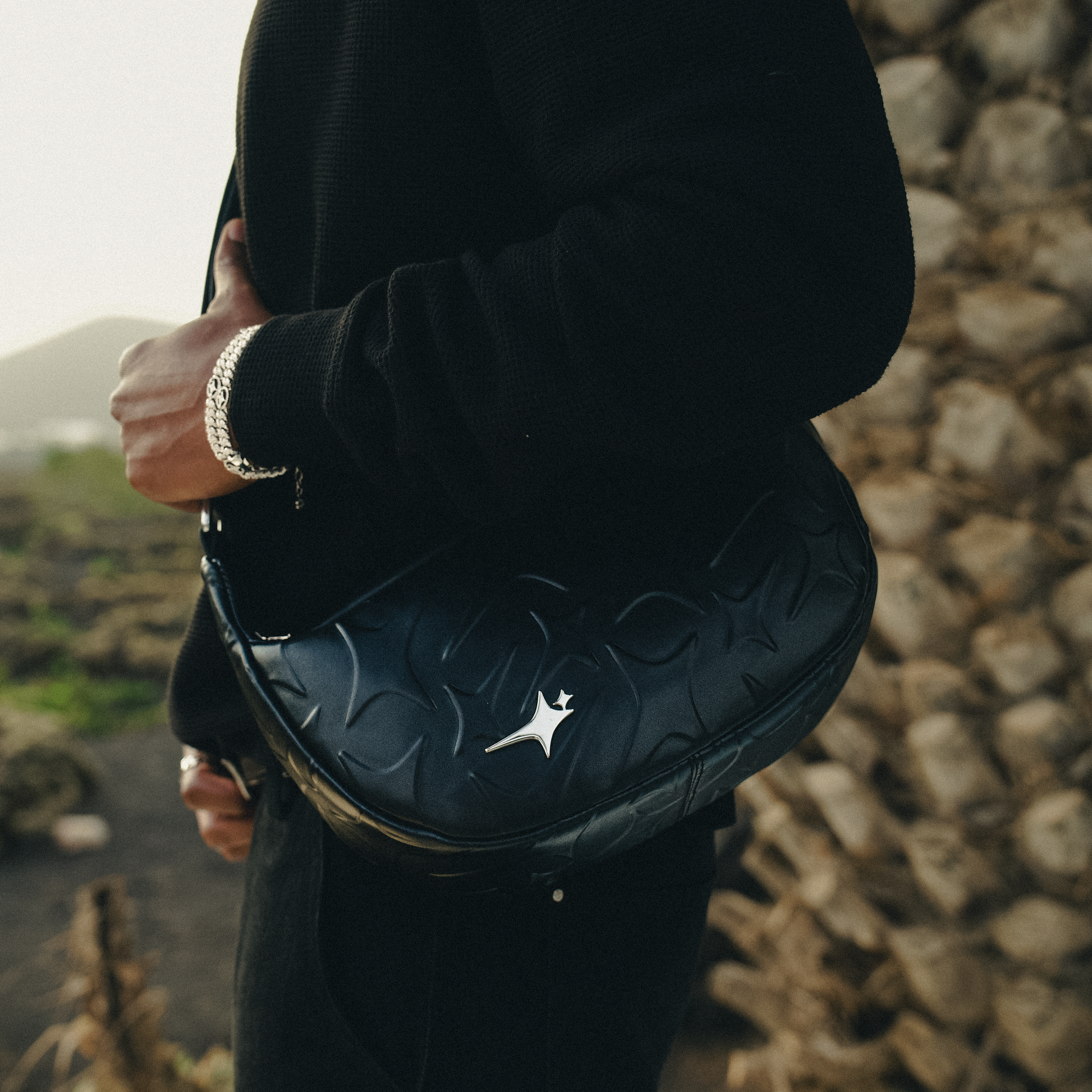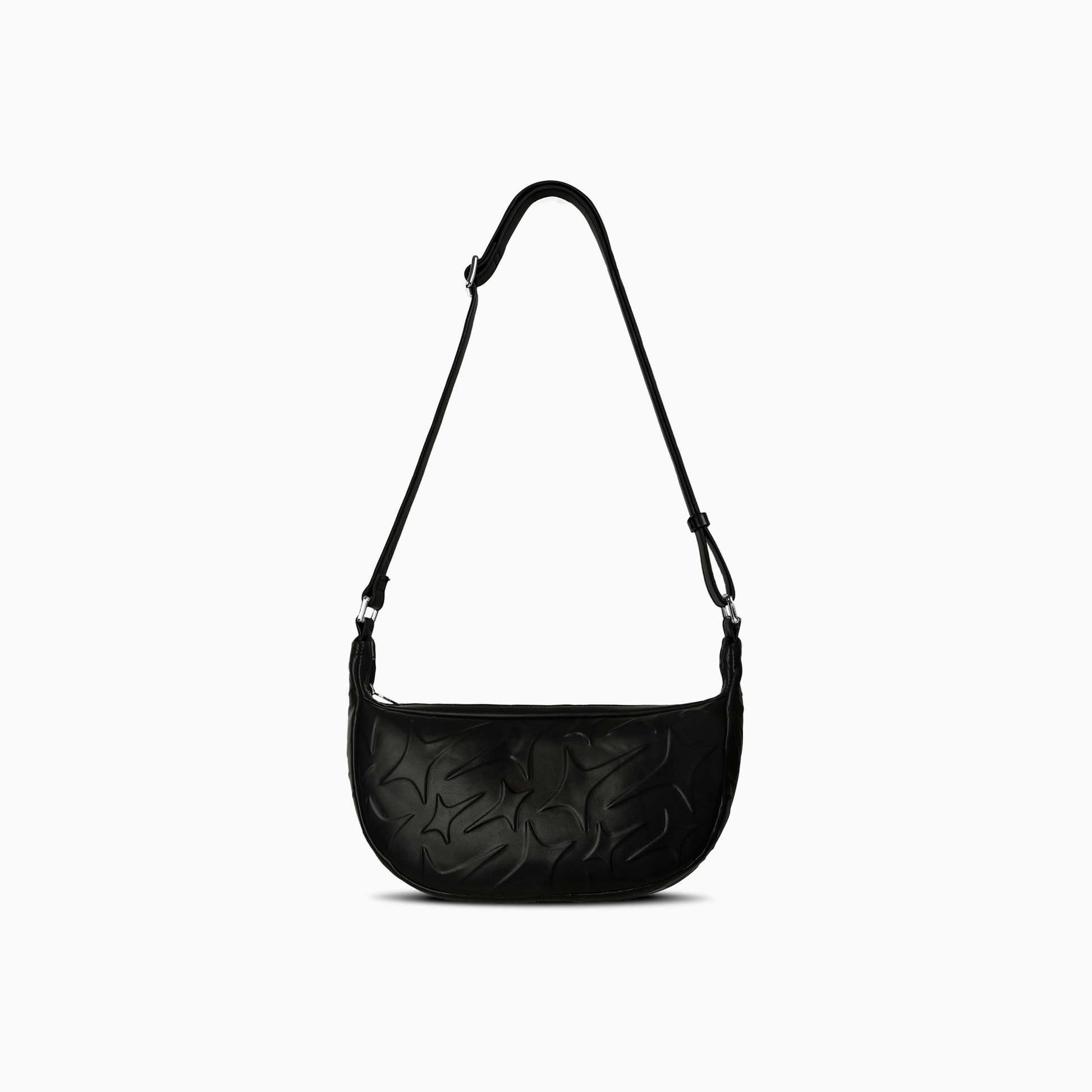 The Monogram Messenger Bag, crafted in black faux leather, revisits an urban essential with a sophisticated and bold design. Spacious (35 x 20 x 9 cm), it combines practicality and aesthetics thanks to its adjustable shoulder strap and functional interior. Its style is enhanced by the embossed Make it Shine monogram, which creates a unique relief, and by the 3 cm metallic logo on the front, for an extra touch of character.