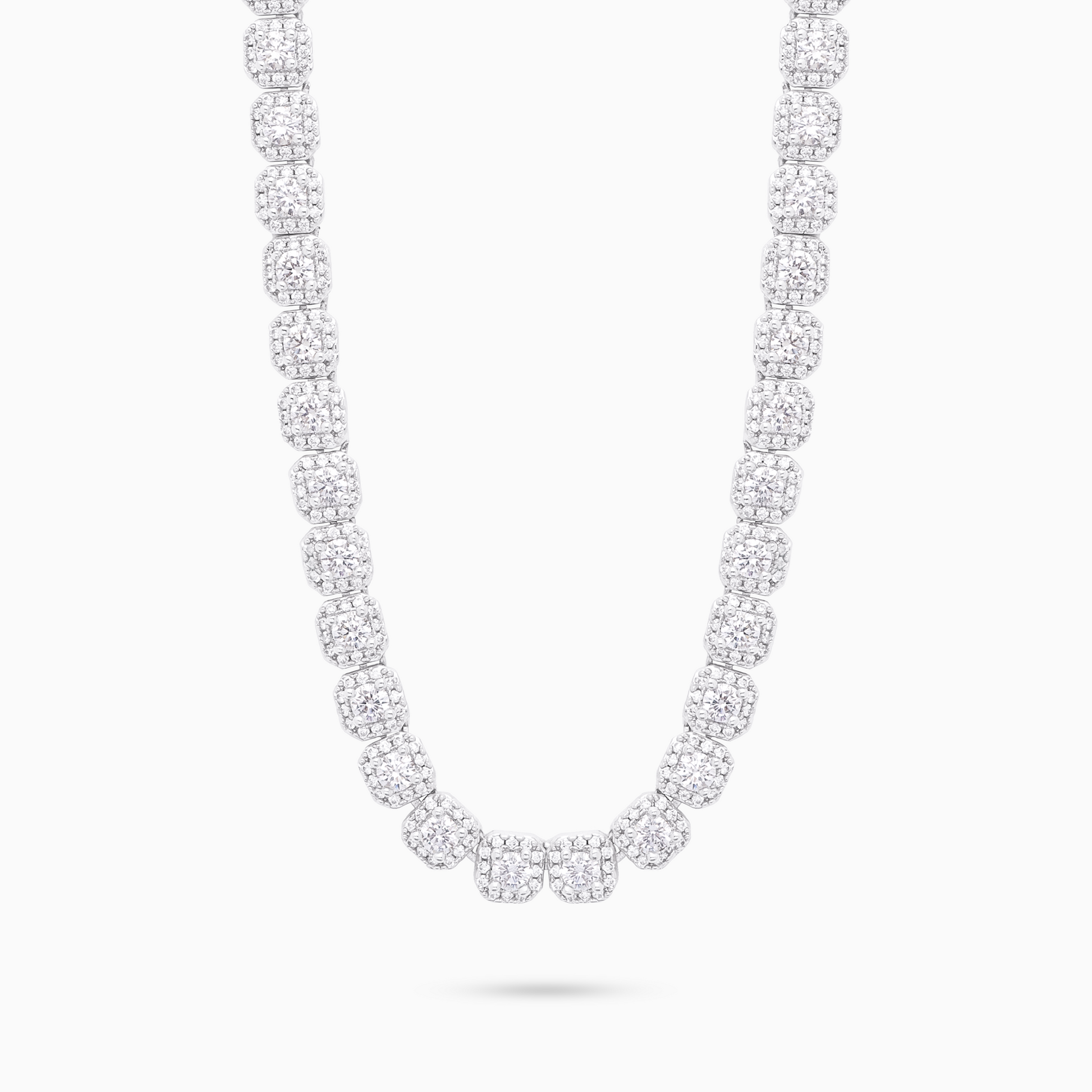 Flooded with several layers of set stones, the 6MM Clustered tennis is a new form of Tennis. Each layer draws attention to the larger stones arranged in the center, allowing it to catch light from all angles for an out-of-this-world sparkle.