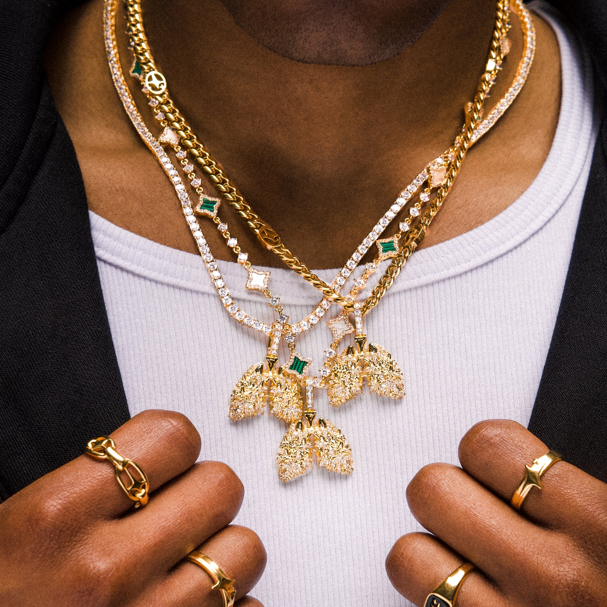 Discover our exclusive Golden Lung pendant, an iconic creation made in collaboration with High & Fines Herbes . This unique piece of jewelry features beautifully crafted lungs, adorned with finely sculpted cannabis leaves and enhanced with sparkling zirconium oxides.