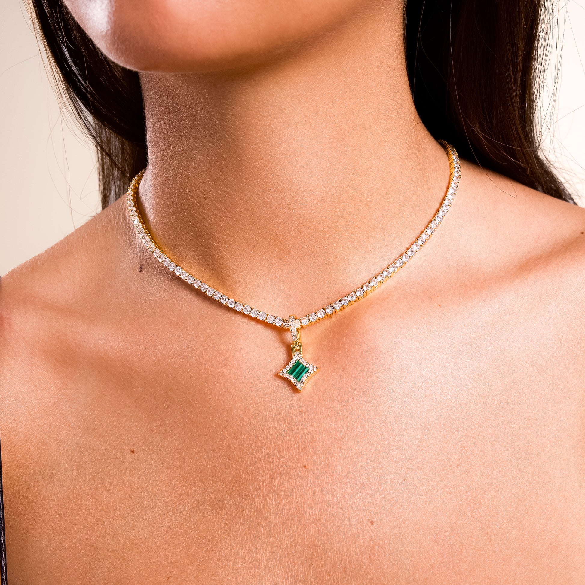 Here is our Star pendant, combining elegance and brilliance. At the heart of this jewel, a star encrusted with sparkling stones highlights a central stone in imitation malachite, offering a thickness of 8 mm for a subtle and luminous charm.
