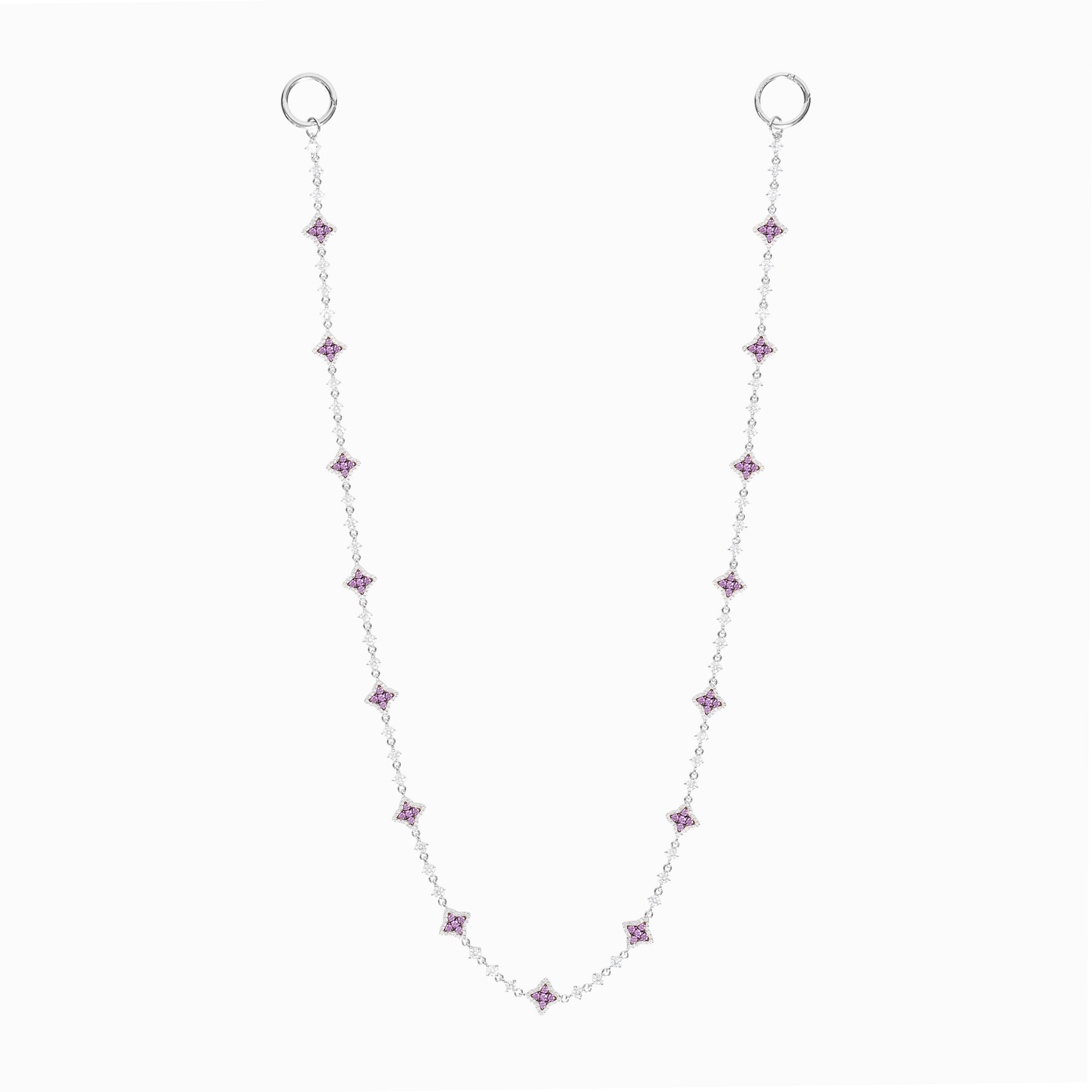 Discover our Flower Tennis Wallet Chain, an exquisite piece that combines the timeless elegance of a tennis chain with the delicacy of flowers. Each flower, adorned with sparkling purple stones and measuring 8 mm thick, adds a touch of charm and sophistication to this 3 mm chain.
